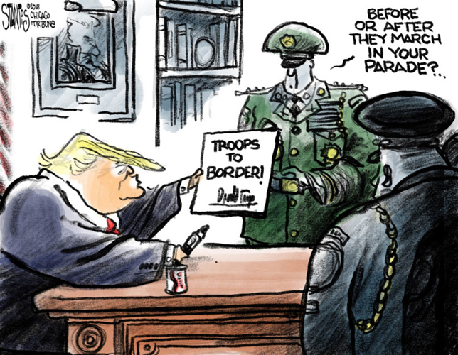 Trump should just as his buddy and puppet master Vladimir Putin to send Russian Troops to the American/Mexican border.