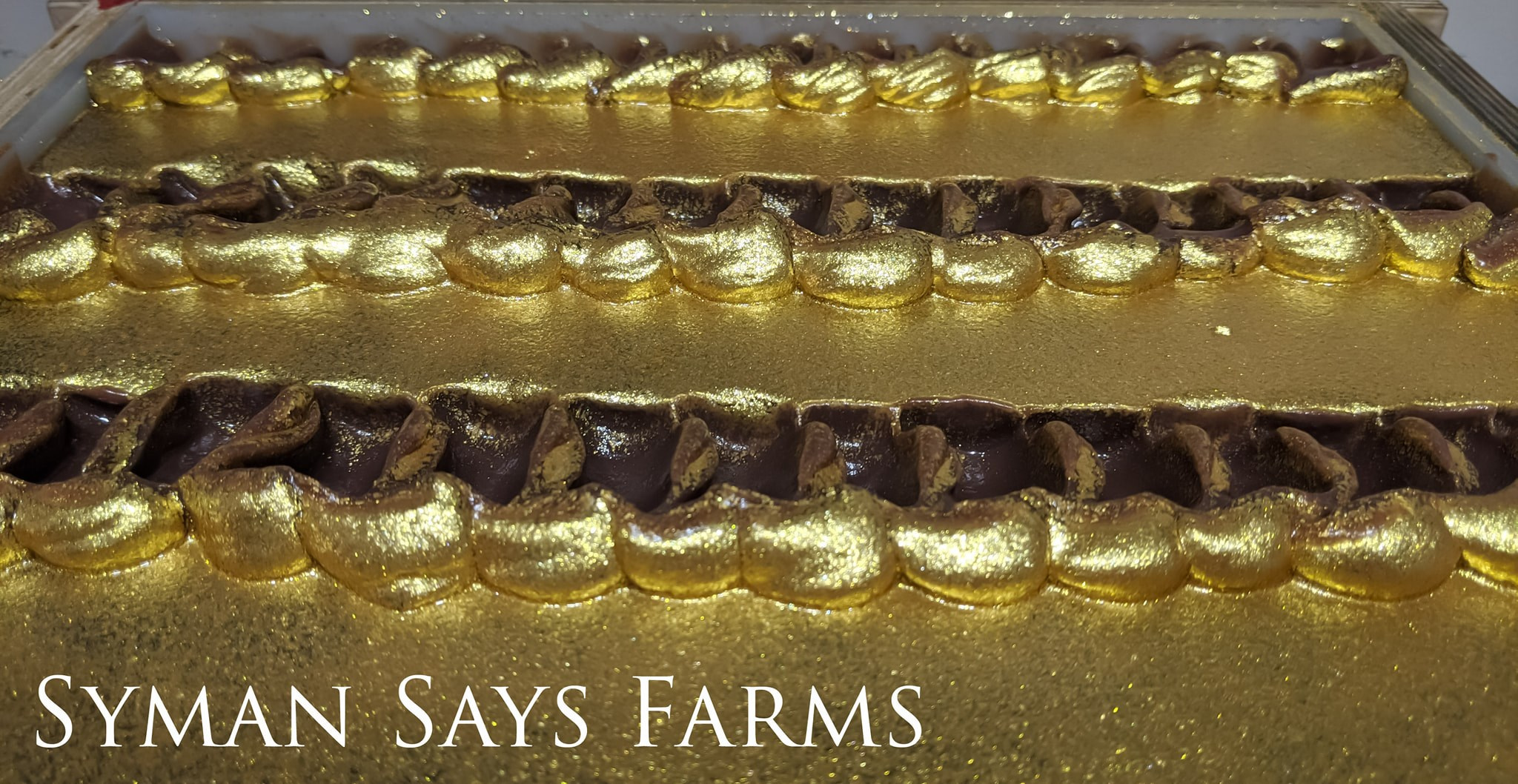 The fragrance is decedent fudgy chocolate with a glittery gold top.