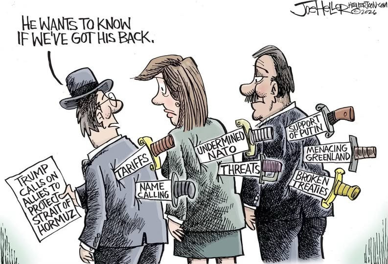 Three days trump said.. three days… remember that. It tells me trump expected Iran’s regime to collapse and he’d get an ass kisser he could name as Supreme Leader for Iran. Now his merry little “excursion” has resulted in thousands of Iranians dead, much destruction across the Gulf and serious upending of the world’s economy. Not to mention complete ruination of America’s standing in the world and destruction of the world wide order that held (more or less) for more than 80 years since World War 2. NATO is gone and with it our alliances we needed and depended on. All for trump’s merry little 3 day war. And we should not forget Israel’s pounding of Lebanon and their extensive participation in trump’s merry little war.