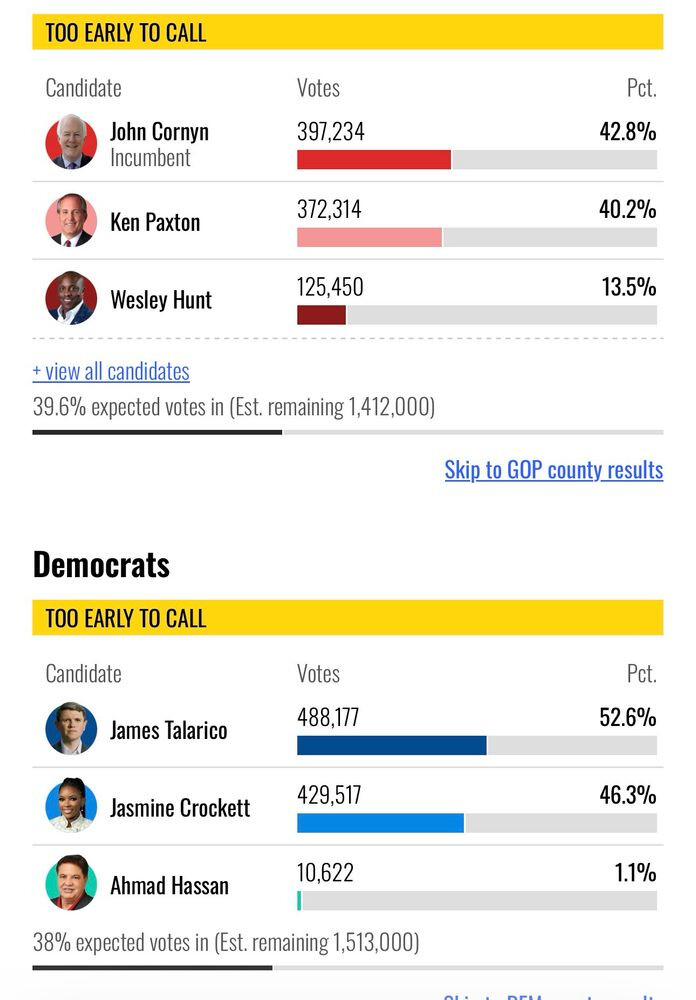 Disparity in red and blue turnout levels is something to pay close attention to I think…albeit near impossible to pin an explanation on.