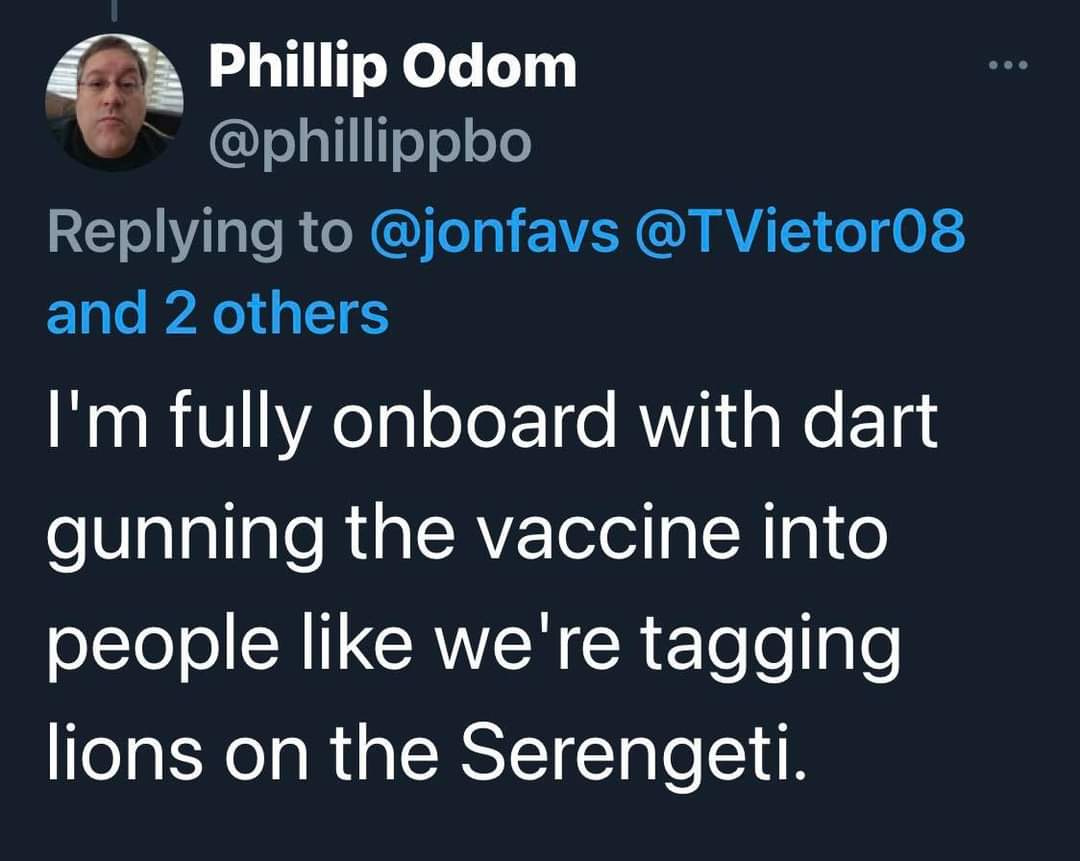 No need for darting the anti-vaxxers, that’s what the Pelosi chemtrails are for.