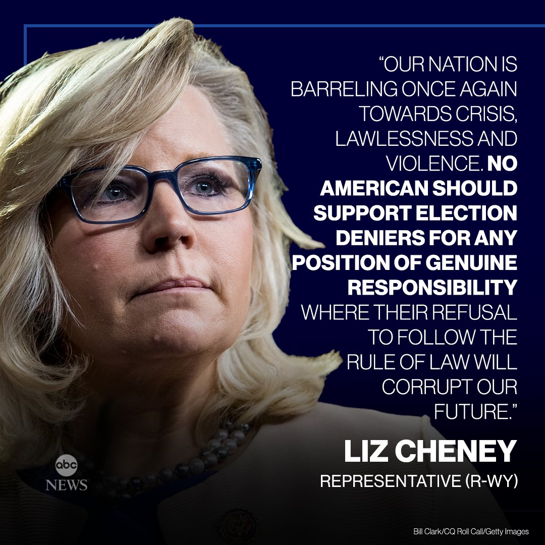 The “traditional conservative” Rs really f’ed up in alienating her and Kinzinger. They were the future of the non-Trumpist party. Now all the Rs have is idiots with no regard for reality or democracy — too many to name at this point.