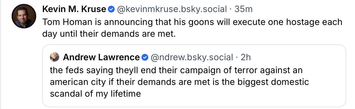 I hope people take note, the policy of waging war on the US by the Trump administration has not changed under Homan.
