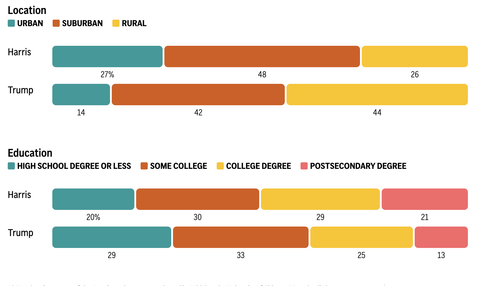 As for demographics, AP VoteCast surveyed 120,000 voters nationwide and came up with good graphics, e.g.,