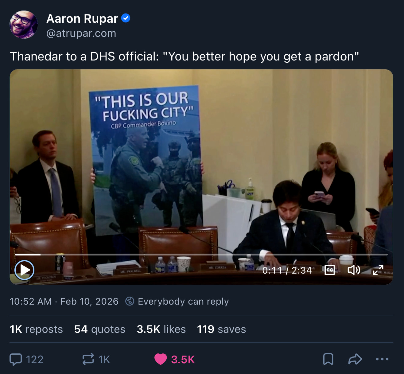 The Trump regime and its congressional lackeys have zero interest in reining in their paramilitary arm (ICE/Border Patrol). They plan to use the paramilitary to meddle in the November election and to continue harassing, kidnapping, and murdering protesters.