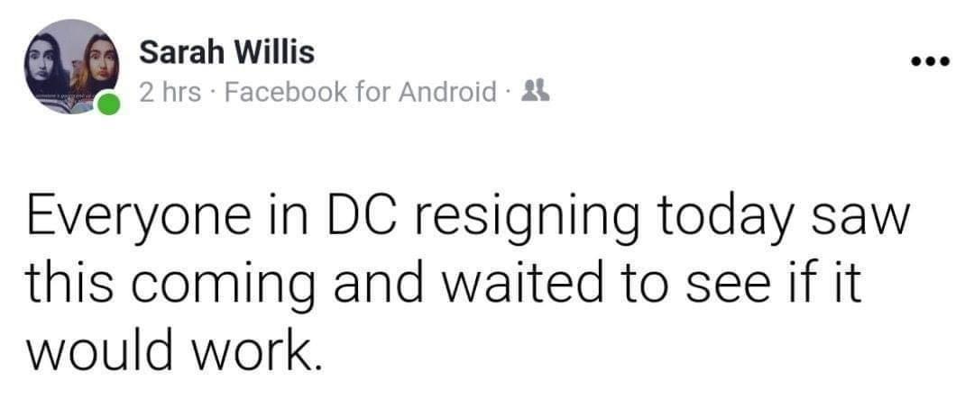 DeVos’ resignation is entirely consistent with her view of public education. Individuals who have the means can opt out of situations they don’t like, but there’s no effort to change the situation (i.e., remove trump or improve public education for all students)