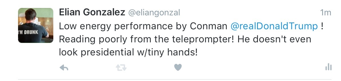 I predicted this earlier this afternoon. Trump is coming down off his manic cycle. He didn’t send out a single tweet for 20 hours, and when he did it was “I’m doing an interview on tv” and “i’m giving a speech tonight” kinds of tweets. And I predicted he’d go into his version of “presidential” mode, even predicted he’d use a teleprompter.