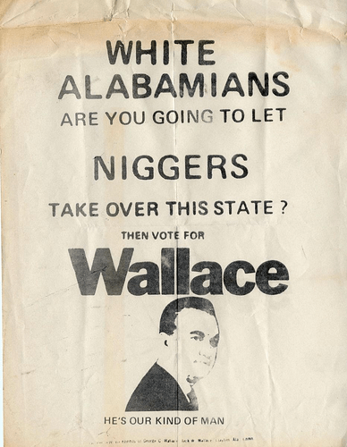 Wonder if this fool has ever done any in-depth exploration of the entire life & inner thoughts & beliefs of George Wallace - wonder if he could actually grasp that he & his knuckle-dragging friends were exactly the rubes that Wallace knew he had to play to.