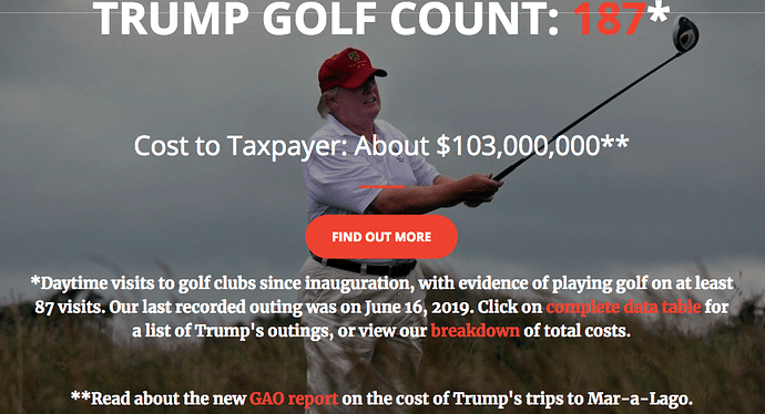 If we’re going to get upset and go war over a $100 million dollar drone, (btw, no one was hurt and its still unclear if it was in Iranian air space, not to mention tRump’s gov’t does tend to lie), I think people should be equally upset that taxpayers have spent over $100 million dollars on tRump’s trips to Mar-A-Loco for his golf outings so far. So we should probably get our money back for that first if we’re so perturbed.