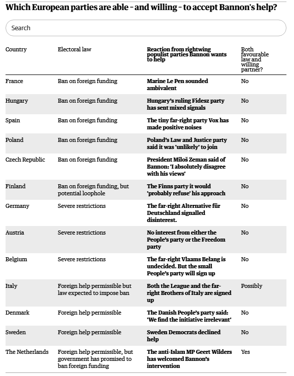 Steve Bannon's far-right Europe operation undermined by election laws | Steve Bannon | The Guardian