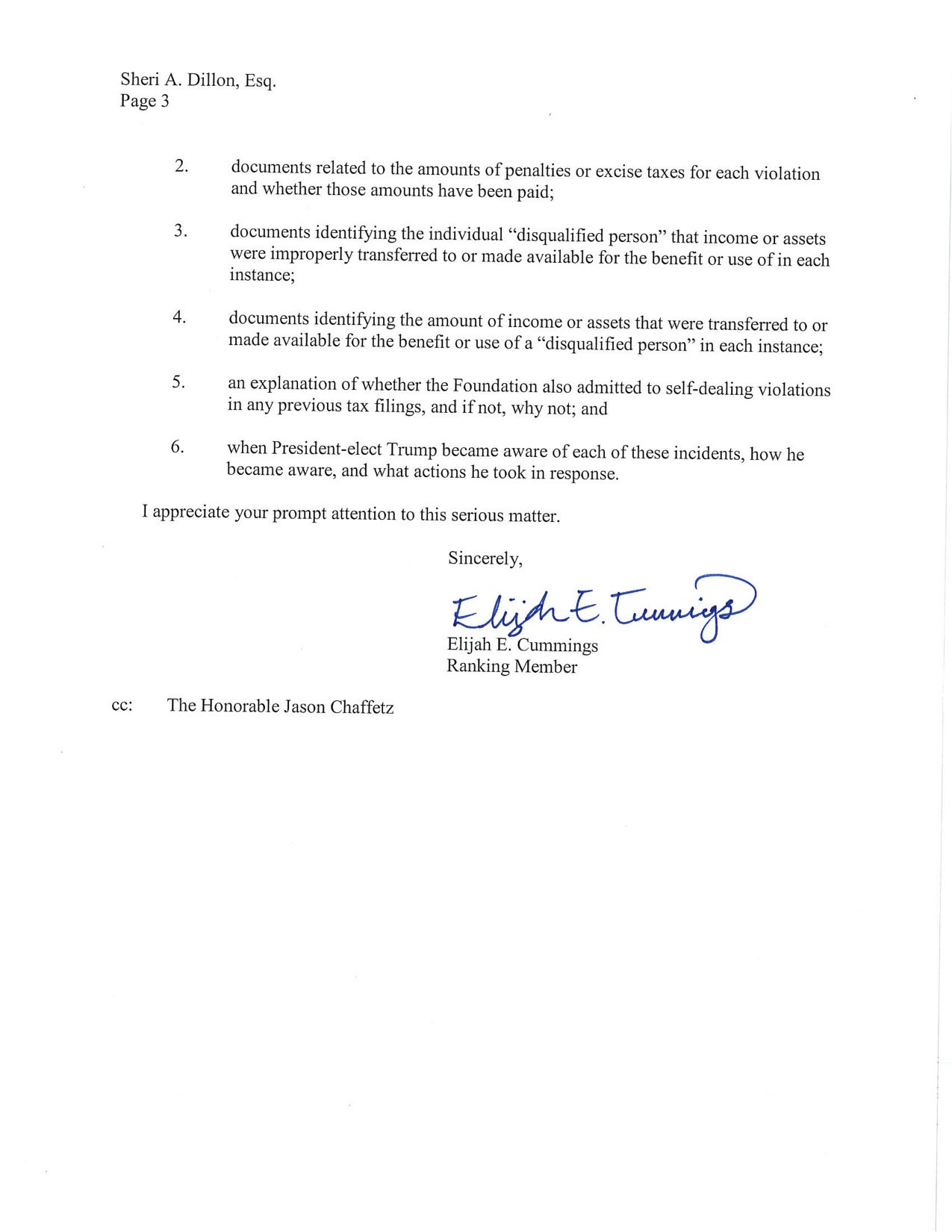So, news. Rep Cummingsās letter is embedded in the tweet.