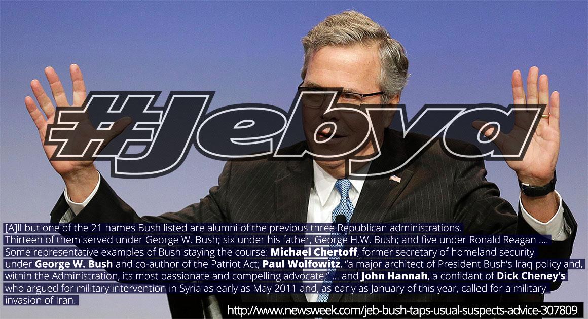 This is a terrible answer of Jeb Bush. Condoning senators to undermine the POTUS is beyond the pale, and we should not expect anything else from the brother of a war monger. Yes, President Obama caused these senators to commit treason by undermining the POTUS. I wonder what republicans would say about democrats doing the same to President Bush???
