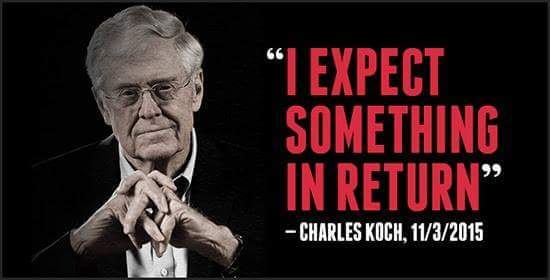 It doesn’t matter if they come out publicly supporting any candidate. The Kochs are running the entire GOP primary race because Jeb ! is such a weak candidate. Charles Koch is my candidate for the Dick Cheney Puppeteer Award of the Year.
