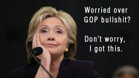 13 hour interrogation before Congress and she stayed calm to the end. She walked away looking good while the Republican witch hunt committee looked like fools.