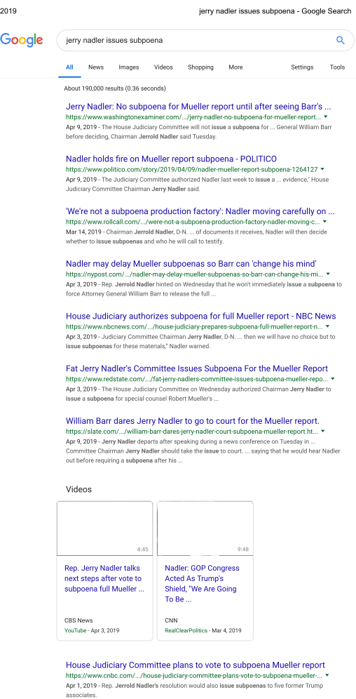 seems that Nadler is already assuming that Barr will ignore/defy his subpoena. Given that, I hope that his subpoena has a 24 hour deadline for compliance – no point in wasting time waiting for a response when you know what the response will be.