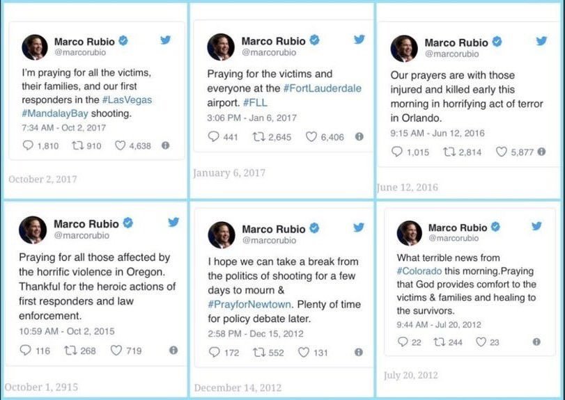 As Republicans begin heaping âthoughts and prayersâ on the families of the 17-plus people killed in Wednesdayâs deadly shooting at a high school outside Ft. Lauderdale, Florida, a writer for Jimmy Kimmel Live! made sure to note how much each had taken from the National Rifle Association.