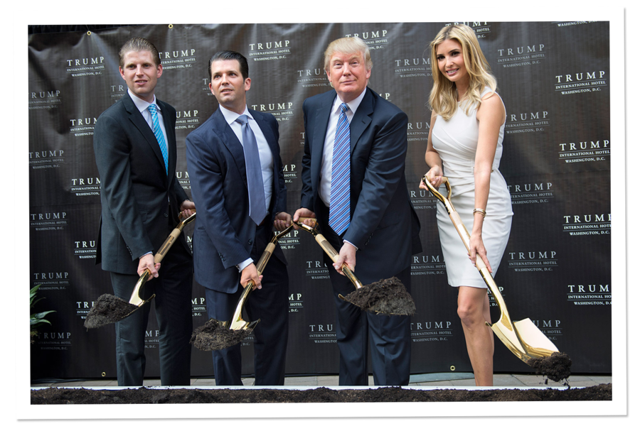 trump and spawn shoveling shit with those gold shovels. As usual, he leaves the smiling duties to the spawn.