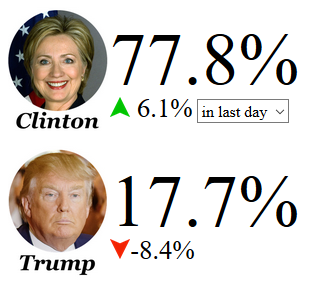 Fivethirtyeight has 'em at Clinton…81.4% and HO at 18.6%
