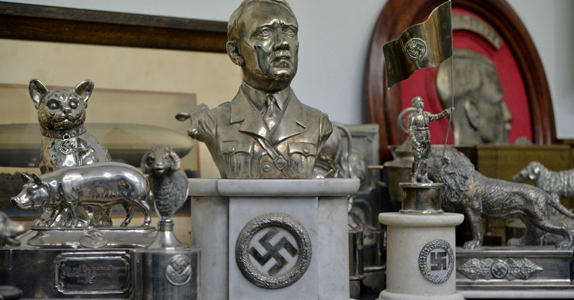 Don’t know, there’s a barely legible plaque on its base that some industrious type might want to decipher…I was drawn to the Nazi kitty. Change its litter box or it invades Poland.