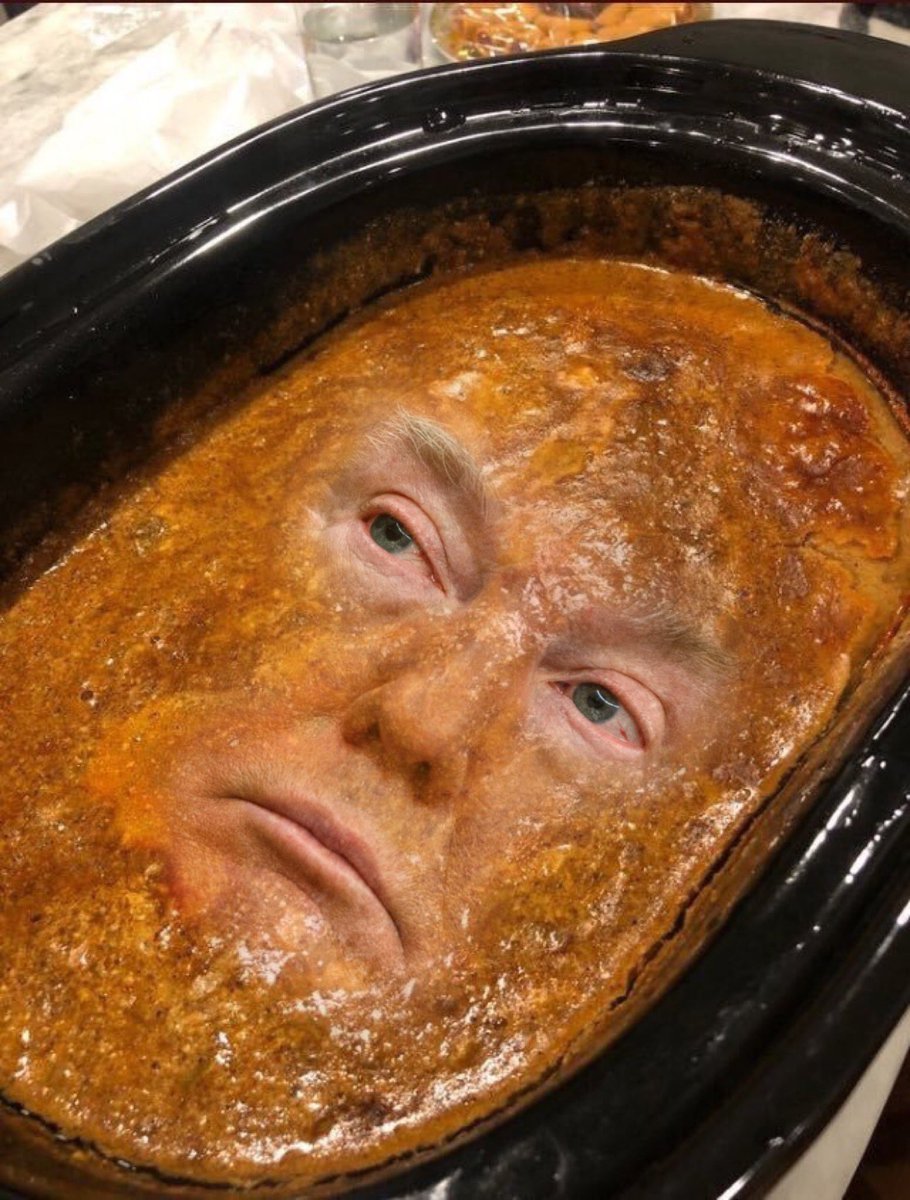 That’s not queso dip. That’s a picture of Dump’s vat of bronzer that he uses to create his year round ‘tan’.