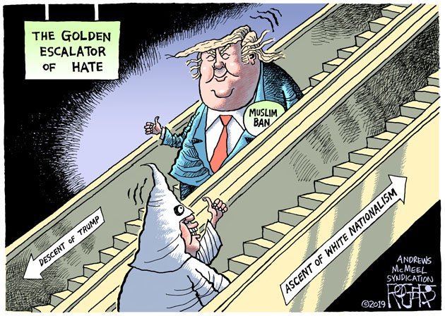 Sorry - but this is not simply clumsy syntax … Trump and his communications team may be inept & dense … but not to the extent that they have no culpability in this mudslide of hate. No sir… the ugliness that they are enabling is fully intentional.