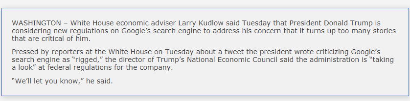Well Donald… Perhaps you will see this little minor setback as a opportunity? Instead of building a media powerhouse as you were planning your post defeat world back in 2016… How about taking your impressive business acumen and starting up your own search engine? You obviously have found a pretty big hole in their search algorithm and even you must be impressed with how google’s business model has allowed them to dominate the internet and create wealth for their owners. The first step is a memorable domain name… perhaps ‘giggle.com’?
