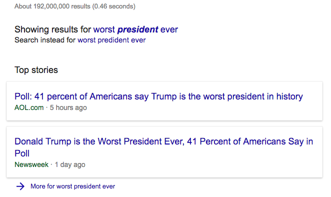 I bet if you type ‘Worst President Ever’ into Google, you’ll be #1 in the rankings.