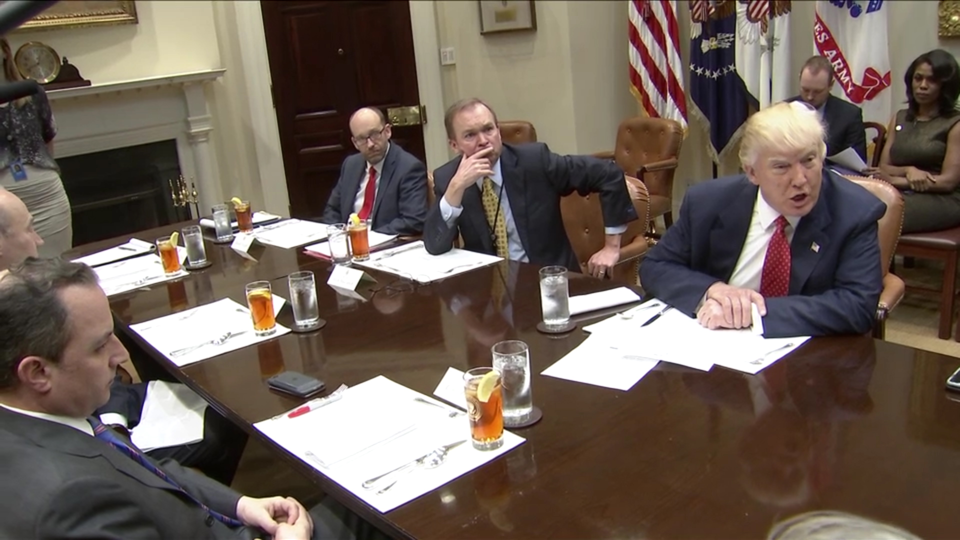 BTW, Trump’s day? Supposed to have led a budget meeting but from the photo I can tell he was there as long as the cameras were. How? Just water at his place, no diet soda.