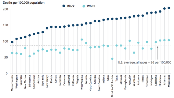 Chart shows deaths before age 75 from conditions that can be effectively treated.