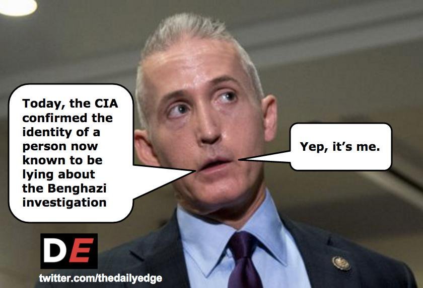 What gets me is the utter arrogance: they are so INSULTED and OFFENDED that they should have to deal with this. Who the hell are YOU, Trey Gowdy? Who the hell are you to tell the public what we should or shouldn’t know. They think they are God-like. Just like Dave Brat (who used to be my representative, thank god, no longer) who cannot stand the fact that someone who gets a $1000 tax credit should not get a penny more in health subsidies.