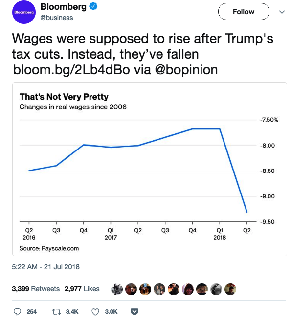 Wanna know how tRump’s tax cuts are doing and how the average worker is benefitting from them? Ummm, not very well.