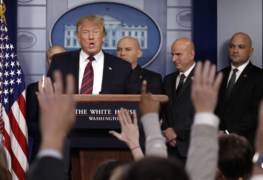 Speaker of the House Nancy Pelosi, the president took to the White House briefing