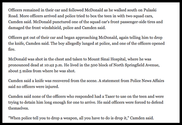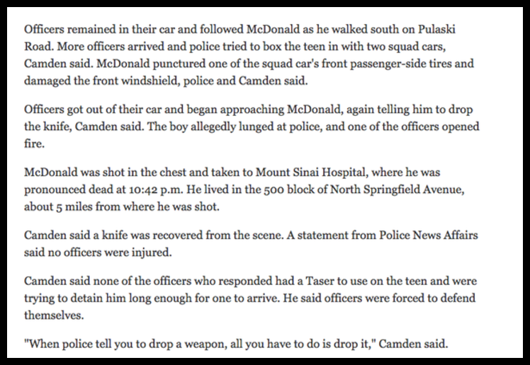 Hereâs what Chicago police originally reported on the shooting in 2014: