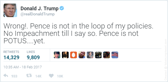 Pence is a fool. He can’t be fired by the President. If he doesn’t start speaking up against some of the more boneheaded, irrational and frankly frighteningly insane things Trump says and does, he will be tarred and feathered with all that shit when he becomes President. And that day is coming…at some point in the near future. He carries the Trump Taint with him right now wherever he goes as far as I’m concerned.