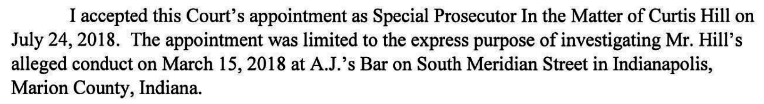 In his report on the investigation released Tuesday, Sigler said there was not sufficient evidence to prove beyond a reasonable doubt “that Hill’s intent in the touching was rude, insolent or angry,” as required for a battery conviction.