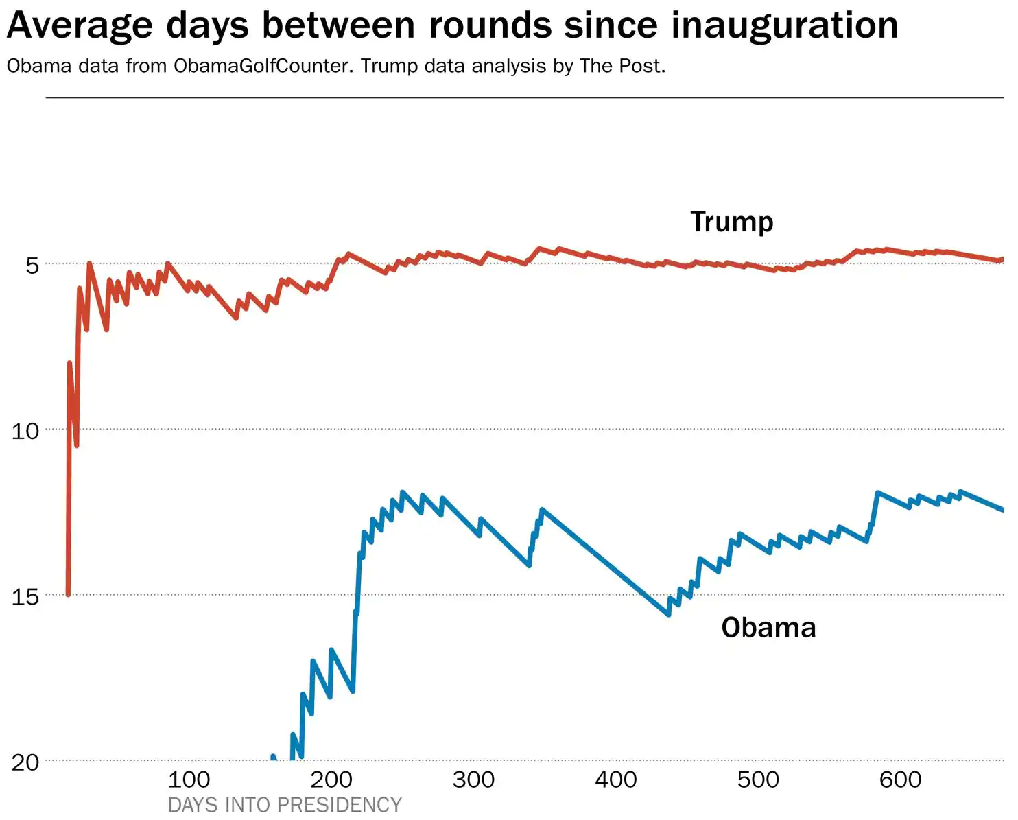 “I’m going to be working for you. I’m not going to have time to go play golf,” Trump said at a rally in August 2016. That was true for about two weeks.