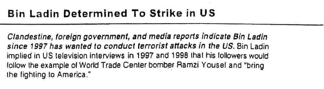 “…you know, some sort of indication that Bin Laden was determined to strike in the U.S.!”