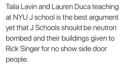 I love Duca and Lavin’s response. When they go low, we go, “Fuck off.”