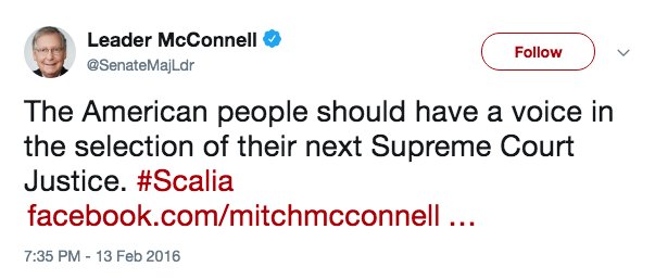 Oh, I took that to mean the new nominee will get as much consideration - I read that as NONE, since Garland never saw the inside of a committee room for a hearing.