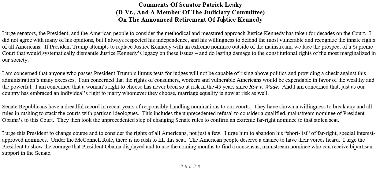 I don’t have a problem with any of the comments citing the McConnel Rule, I do object to the one Senator who tried to argue for delay on the grounds Trump needs time to make a considered decision because pretending Trump cares about a considered decision normalizes Trump and goes against the message that Trump and what he is doing to this nation aren’t normal. If the Senator felt the need to say something he could have followed the example his coleagues laid out in any of the much better phrased tweets that appeared in this article.