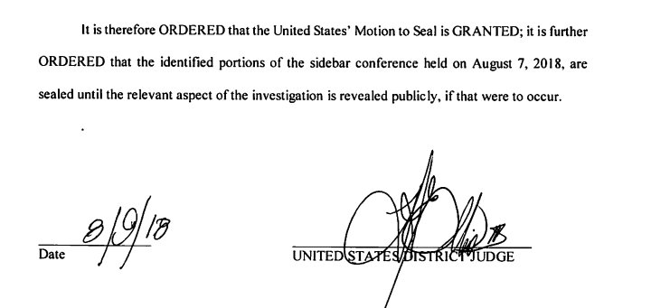 Judge Ellis sealed a transcript of a sidebar conversation.