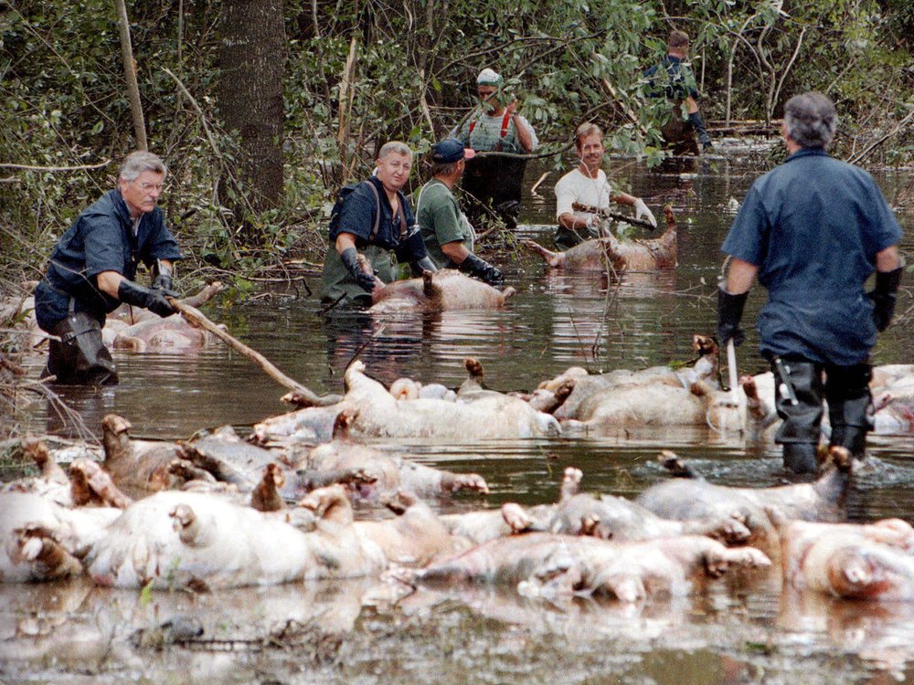 “Flooding well inland could wreak environmental havoc by washing over industrial waste sites and hog farms”