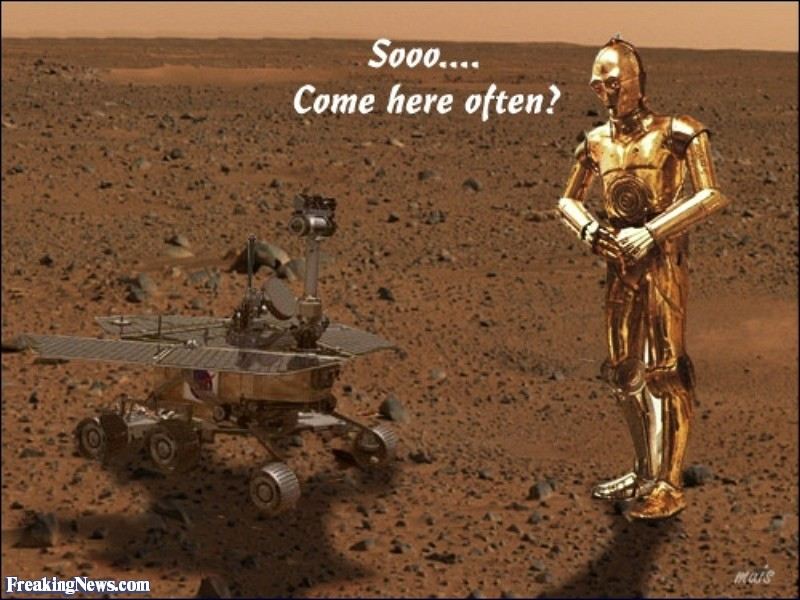 I guess it’s a good thing there aren’t any sentient species on Mars…or I’d be sending them secret messages: “Dude, whatever you do, repel this alien invasion AT ALL COSTS! No pest is more persistent, nor more difficult to eradicate than an infestation of humans! Do not interact with them in any way, and definitely don’t try to befriend them! If you do, you WILL regret it!”