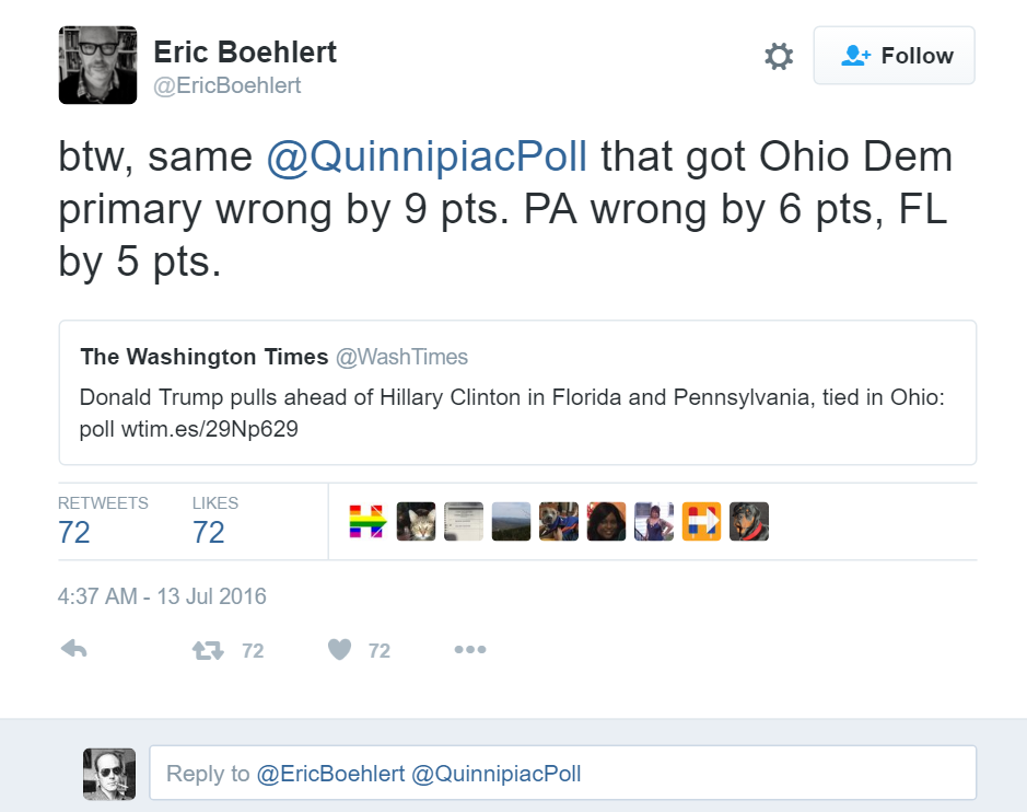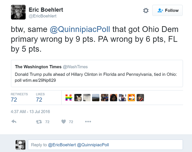 btw, same @QuinnipiacPoll that got Ohio Dem primary wrong by 9 pts. PA wrong by 6 pts, FL by 5 pts. https://t.co/httlX02ct7
