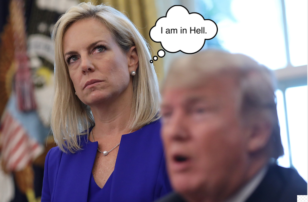So, prior stories hinting that Nielsen was quitting out of some sense of Trump’s “harder” direction for DHS being not “right” somehow and being a bridge too far for Nielsen were spin for her “future” outside of government. She proved to be a good soldier to the end albeit her name won’t be on any “new” directives going forward. “Integrity” and “class” …the hallmarks of the Trump (mis)Administration.