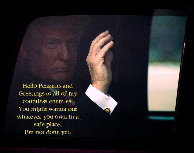 I don’t like where any of this is headed but I can’t help but think trump is forcing a showdown and it’s possible that it’s better now than later. I’ve gotta throw some optimism into the mix.