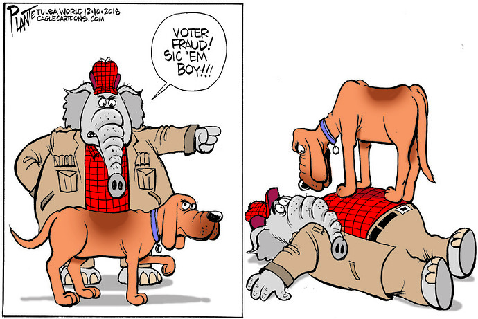 And they just rolled over for him? Anyone else get the feeling the local Republicans actually LIKE this crook? Imagine… where would they be without him? When unfettered gerrymandering isn’t enough to cheat to victory, you cheat every which way but “lose”…