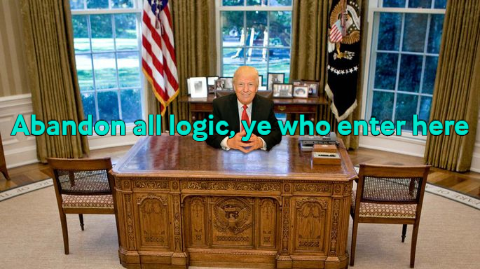 Contemplate the stupidity in that statement for just a second, would ya? Pure tRumpian logic, which is to say, pure bunk, no logic necessary.