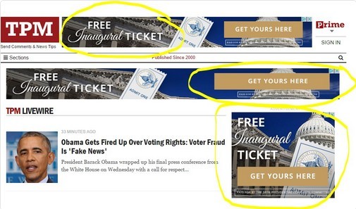 Updating tablet…TPM always takes a long time to load on my tablet… there it is!! A ticket ad. but just one across the top of the page. But since I am in Tucson, Arizona and I lack a plane ticket and it’s too late to attempt to drive there. I guess I’ll hafta fire up my dvd player and start binge watching movies. (Gone With the Wind, Godzilla, The Blob, and movies based on rebellions…the Star Wars movies, Lord of the Rings and the Hobbit)