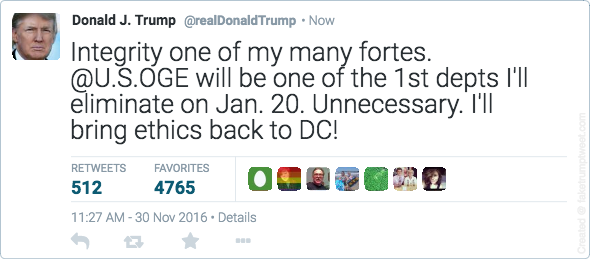 OGE is going to be very disappointed with Trump’s “ethics”.